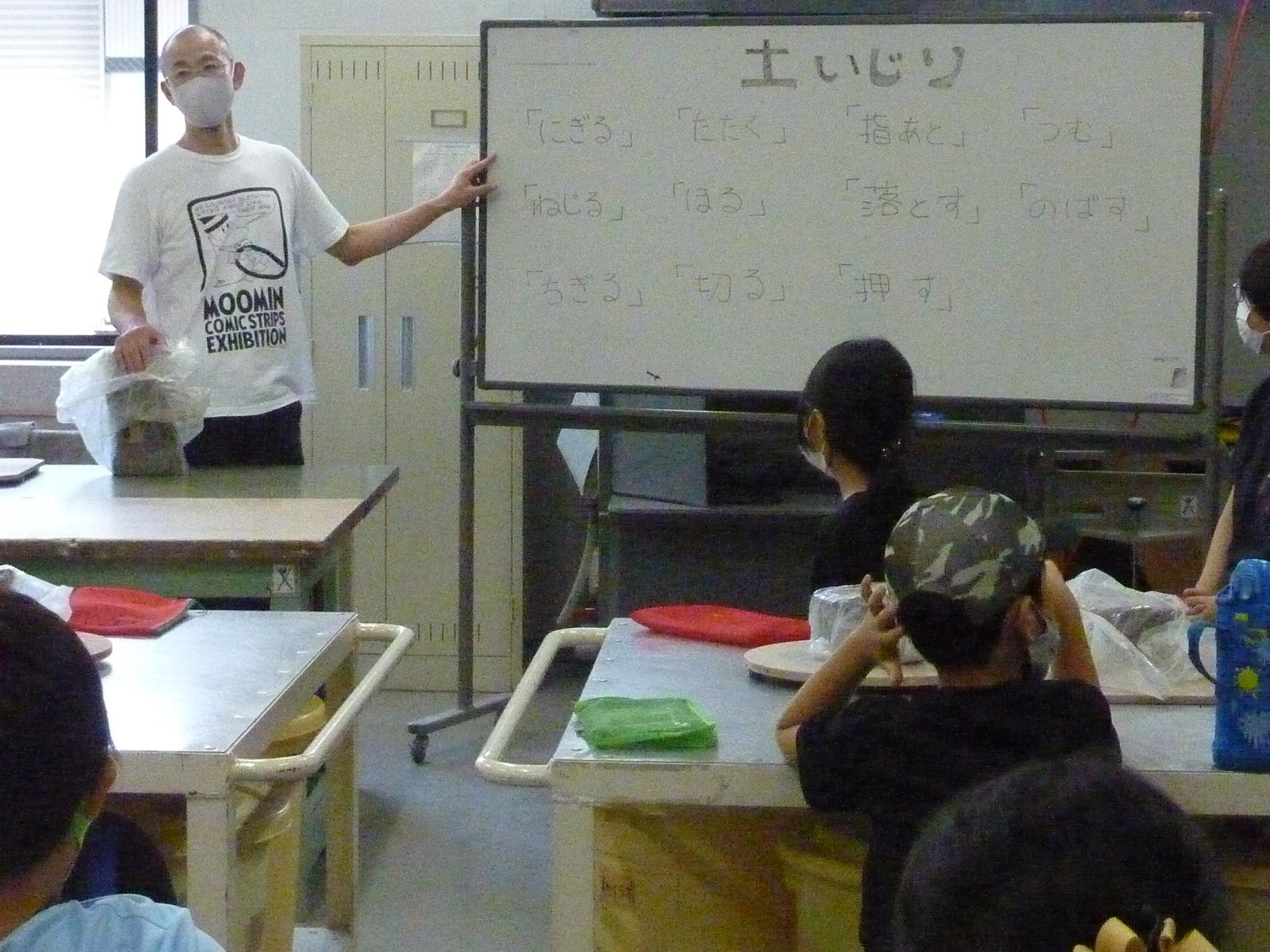 8月7日(土曜日)、企画展の関連催事として、講師として茨城県立笠間陶芸大学校特命教授の佐藤雅之氏をお迎えし、陶芸粘土を用いて、土で自分の気持ちや様々な言葉をカタチにする「土イジり」を体感するワークショップを開催しました。まずは、当館の企画展「土イジり」を鑑賞。企画展の視点になっている「ねじる・切る・どろどろ・けずる・くりぬく」などのキーワードに沿って作品を鑑賞していきました。次に笠間陶芸大学校に場所を移し、佐藤氏から、土のいじり方について粘土に触れながら一つずつ丁寧に教えて頂きました。最後は教わった「土イジり」の方法をつかって自由に「土イジり」し、一つの作品を完成させました。土をいじる様々な方法を知り、体験できる充実した時間を過ごすことができました。